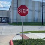 October 6, 2021 Straighten stop sign located on the rear entrance next to Total Wine building |
