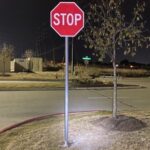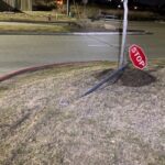 Repair stop sign and remove excess of trash from around one of the dumpsters