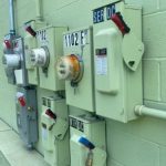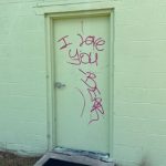 Paint over graffiti, install missing ceiling tile in vacant space and install provided locks on all electrical shut off boxes