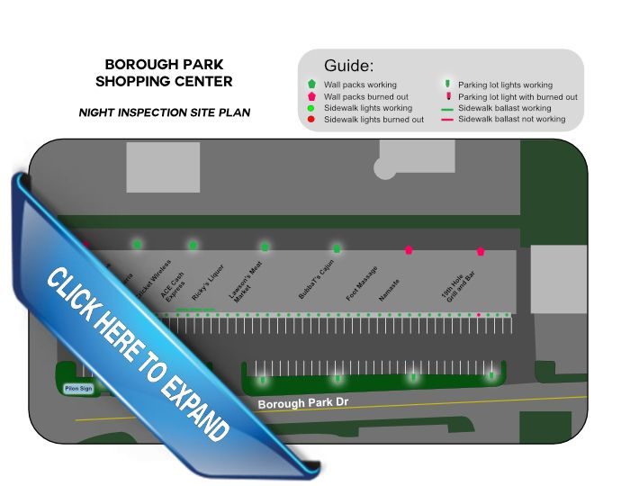 | Trash can lid missing in front of the bar | Bollards need to be installed around the gas meter located behind Bubbat’s Cajun Kitchen |
