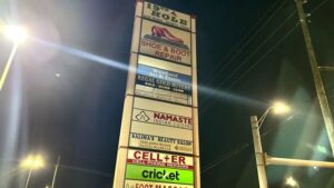 | Ricky’s Liquor fascia sign needs attention | Woodland Art & Frame fascia sign not illuminated |