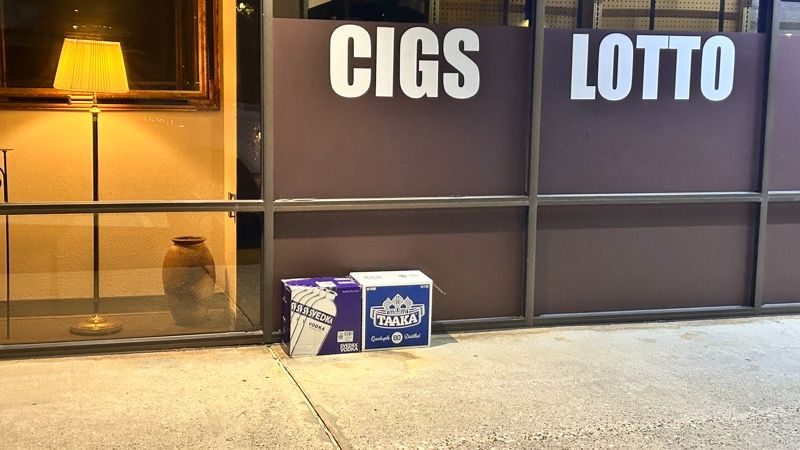 | Boxes left on sidewalk in front of liquor store | Fence needs repair behind the property |