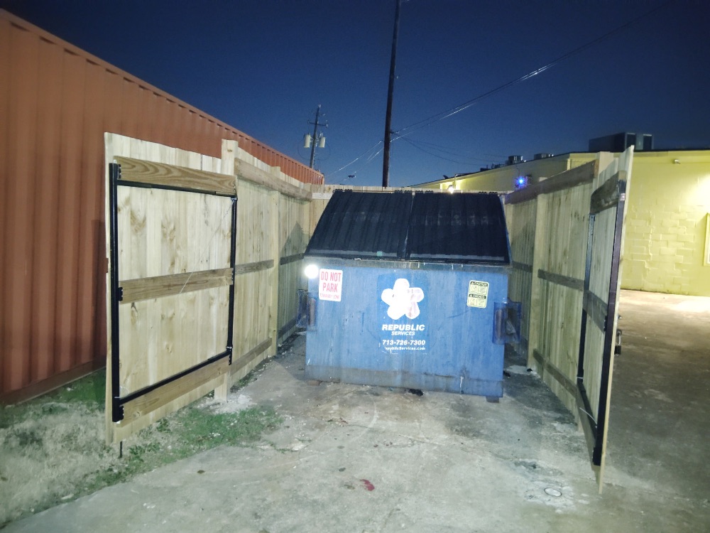 | The crew reported various instances of illegal dumping at the front of the Lone Star property. A severely leaning metal pole was noted. Near Fiesta Mart, several booster seats and furniture items were found, appearing to be business assets but improperly placed. Unauthorized commercial advertising signs were also seen near Cheesecake Factory. Additionally, an excessively full dumpster was reported. |